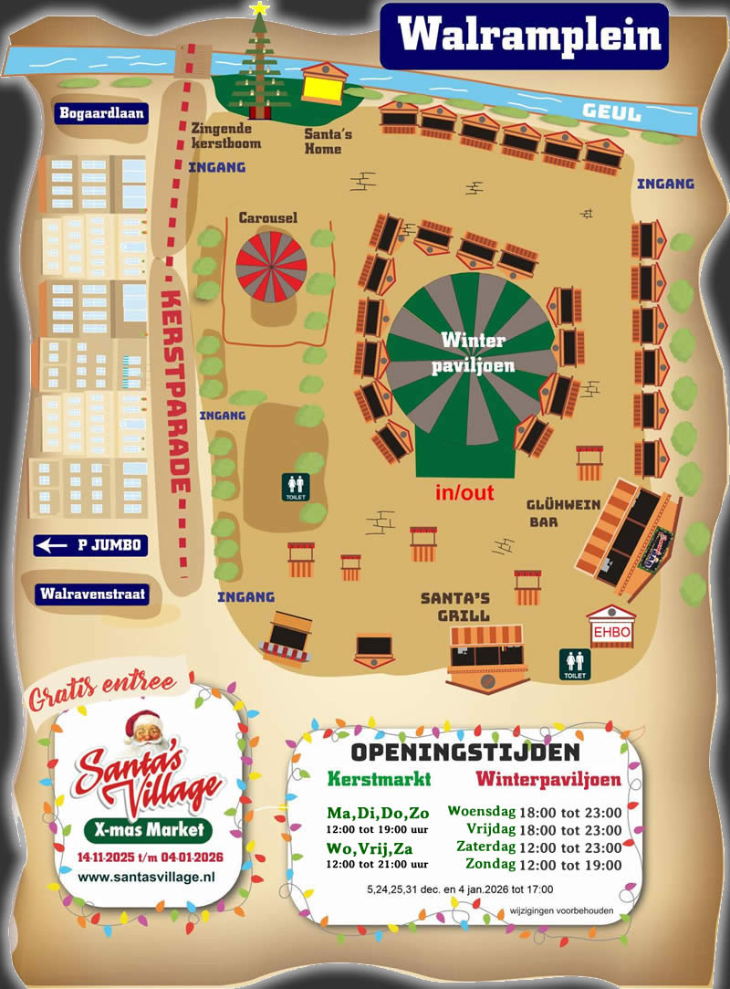 Neem een drankje bij de buitenbar, laat de kinderen rondjes draaien op de carrousel en bewonder de 7 meter hoge zingende kerstboom die iedereen betovert. Santa’s Village is de perfecte plek voor plezier, sfeer en kerstmagie voor het hele gezin.